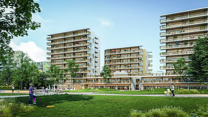 Nördlich der Berresgasse in Wien Donaustadt liegt der Entwicklungsschwerpunkt eines rund 19 Hektar großen neuen Stadtentwicklungsgebietes. Insgesamt sollen auf dem gesamten Areal rund 3.000 geförderte Wohnungen entstehen.